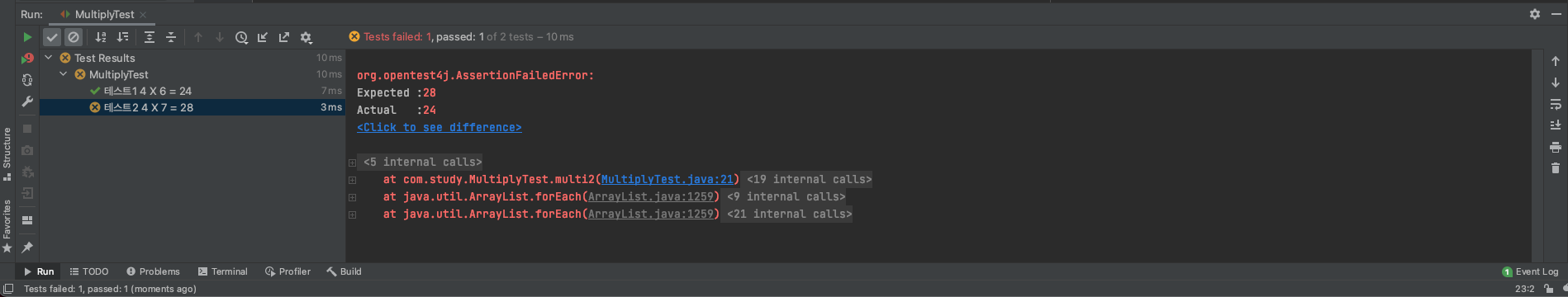 자바 언어로 프로그램을 개발할 때 이런 자동화된 단위테스트를 수행하기 위해서 나온 프레임워크가 JUnit이라고 할 수 있다.
