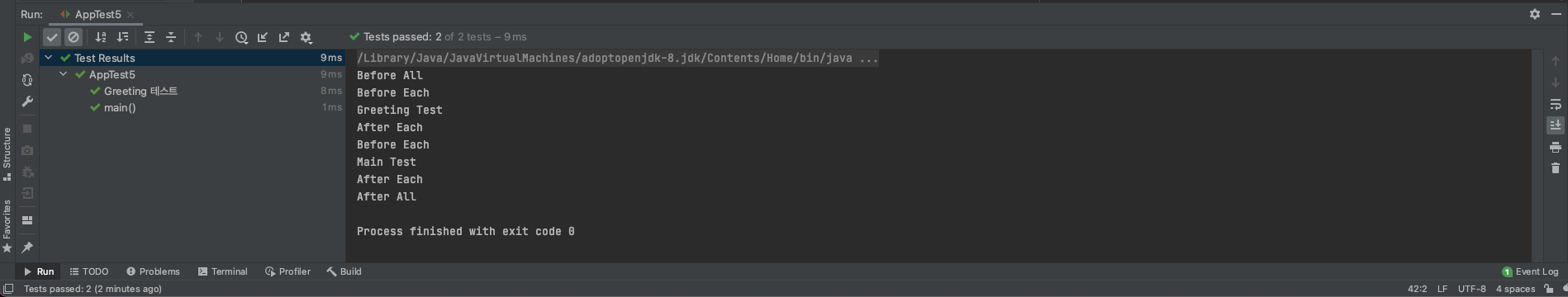 Gradle을 이용해 자바 프로젝트를 생성해서 JUnit5를 사용했다.