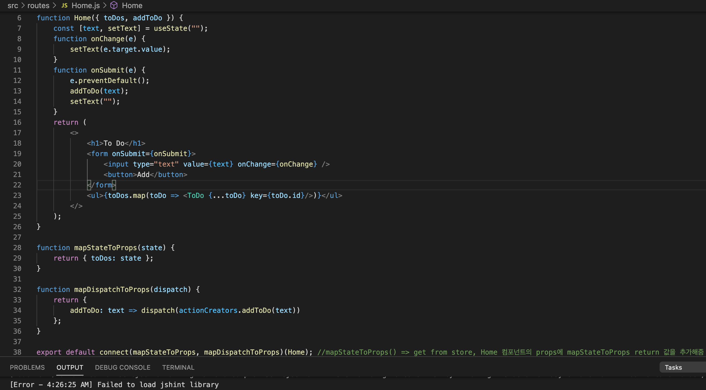 => store.js 라는 별도의 파일에서 데이터에 대한 처리를 담당하고 컴포넌트와 통신을 connect함수와 mapStateToProps, mapDispatchToProps 두 함수 구현을 통해 간단하게 할 수 있다.