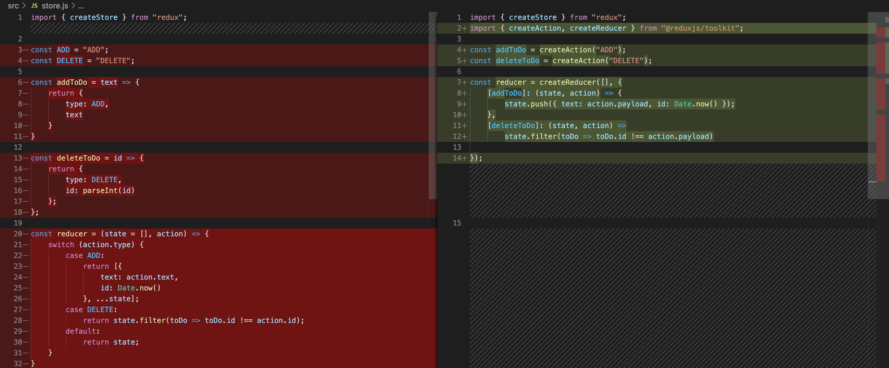 reducer에 Action을 보낼 때 직접 action Object를 정의해서 보내주던 과정을 createAction을 사용해서 정해진 형태로 바꿀 수 있다.