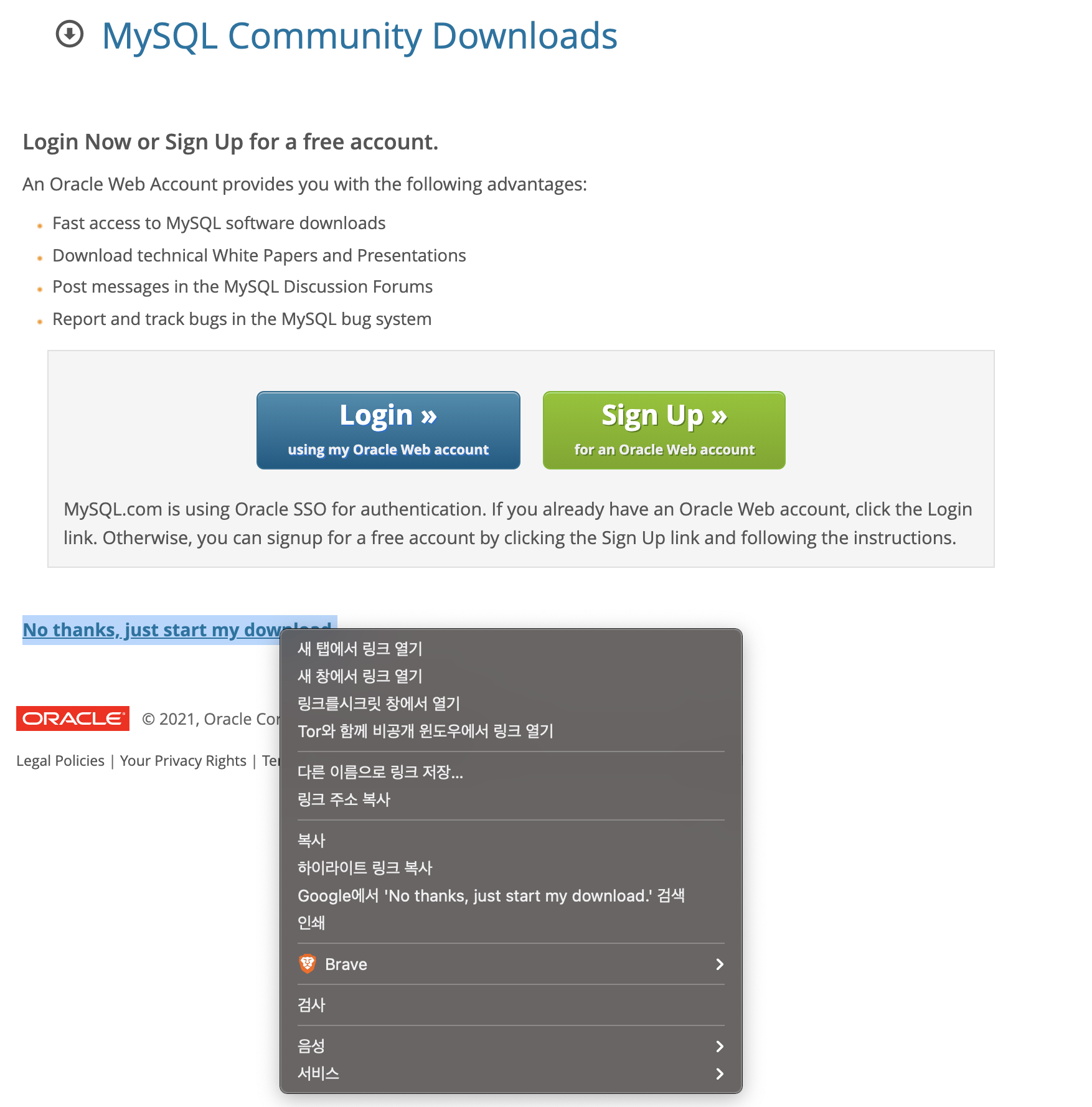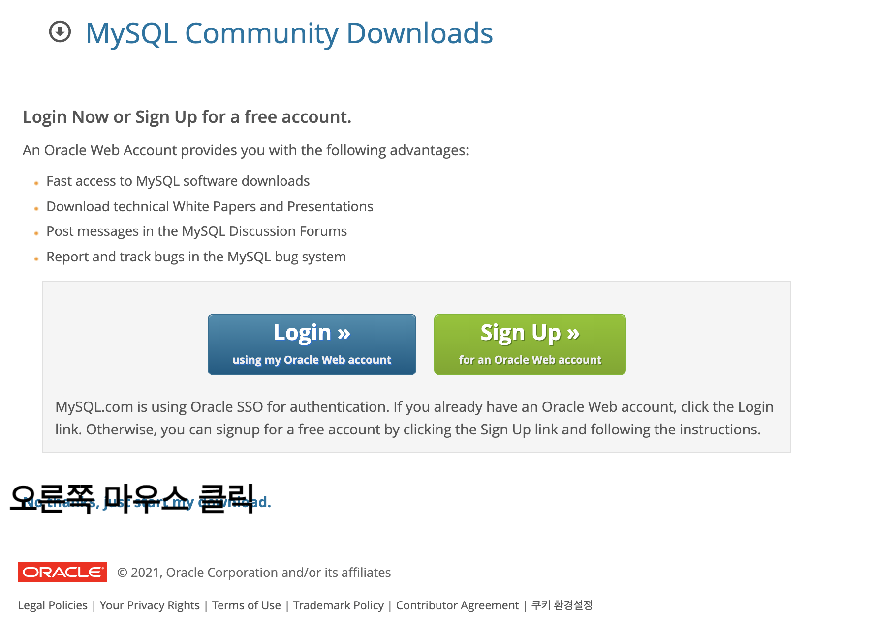위와 같이 오라클 로그인을 하라는 안내가 뜬다.